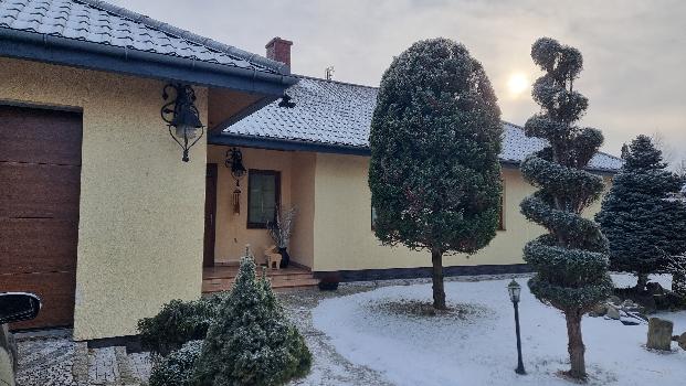 Luksusowy parterowy dom wolnostojący z garażem w wysokim standardzie wykonania i wyposażenia, działka o pow 1130m2 ogrodzona elementami kutymi z cegłą klinkierową w otoczeniu zabudowy jednorodzinnej.