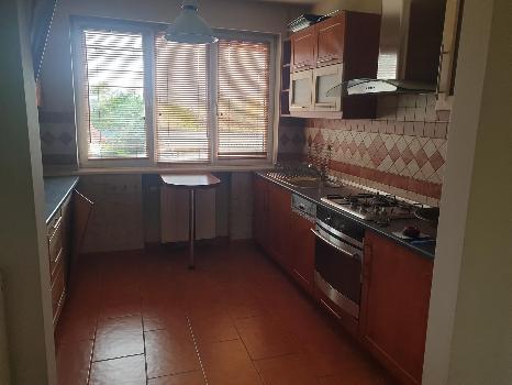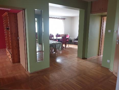 Na podwyższonym parterze posiadamy holl z którego jest wejście do kuchni , łazienki z wc, salonu przedzielonego na dwie części oraz 2 sypialnie