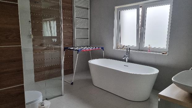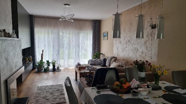 Wybudowany z bloczka karamzytowego, kryty dachówką, na posadzkach kafle i Barbinek parkietowy, okna pcv- pięciokomorowe, szyba zespolona, rolety elektryczne na parterze., ogrzewanie gazowe kotłem Junkers na parterze ogrzewanie podłogowe, na piętrze panele.