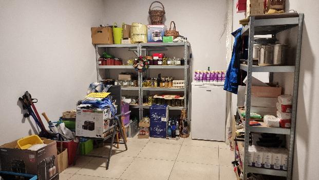 składa się z wiatrołapu, kuchni połączonej z salonem w którym zamontowano kominek, z wyjściem na taras z łazienki dolnej, pralni - suszarni oraz garażu i spiżaki
